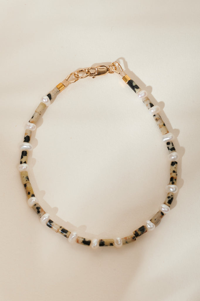 / Riverbed Bracelet - Dalmatian Jasper & Freshwater Pearls