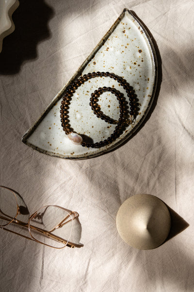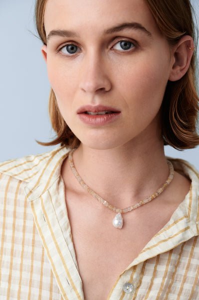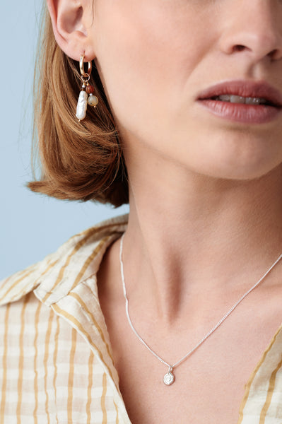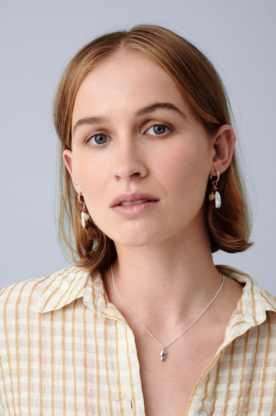 Double Hoops - Keshi Pearls & Montana Moss Agate
