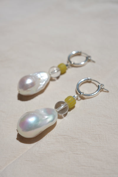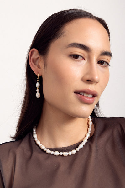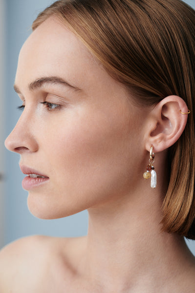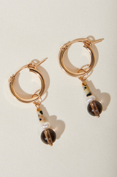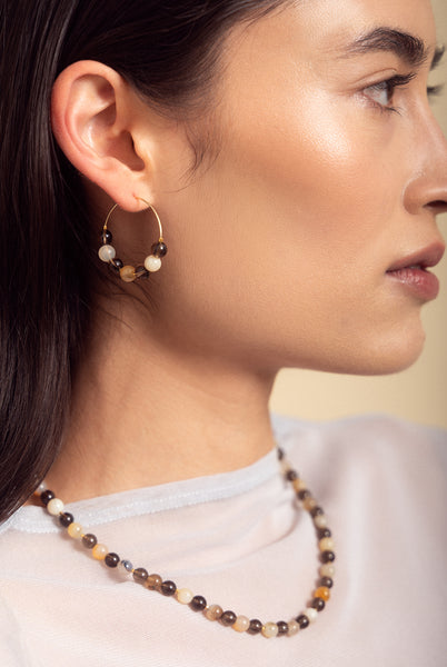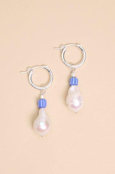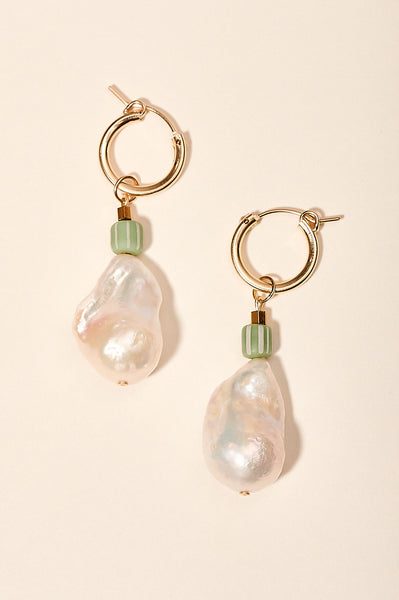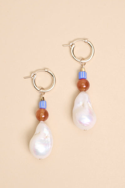Double Hoops - Keshi Pearls & Montana Moss Agate