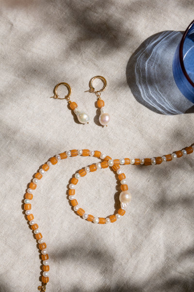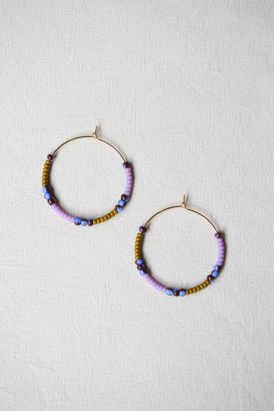 Simple Beaded Hoops - Lilac & Spanish Olive