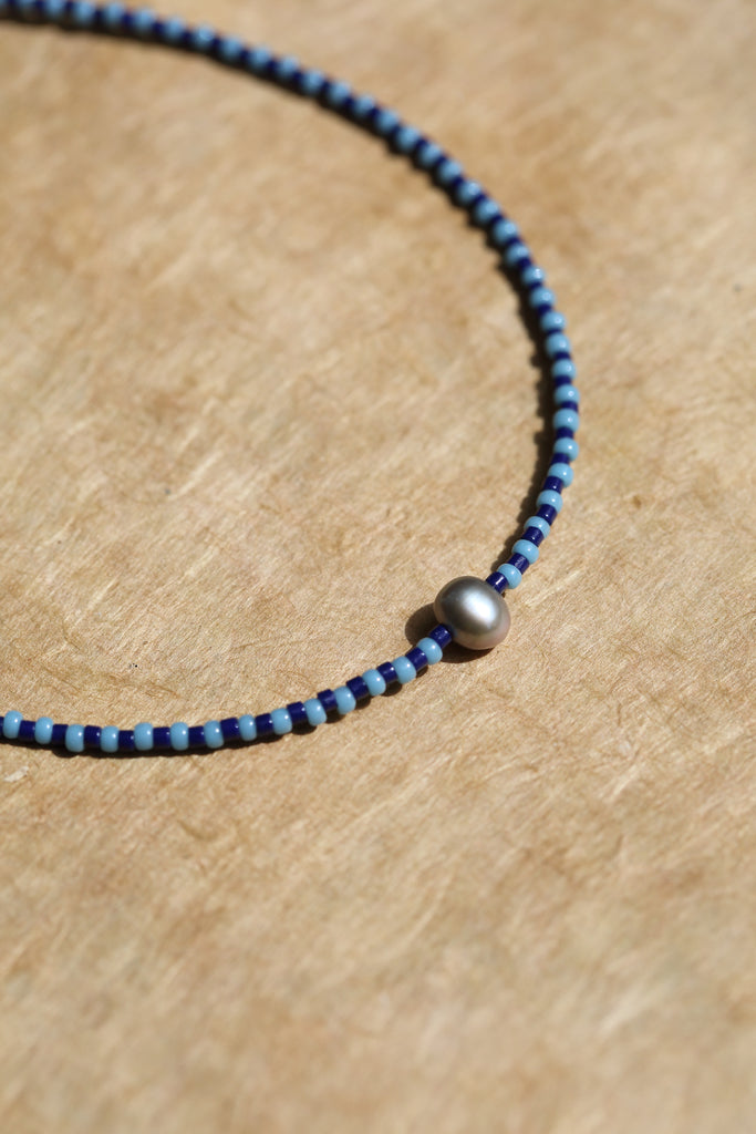 Two Tone Necklace + a Pearl - Indigo & Sky