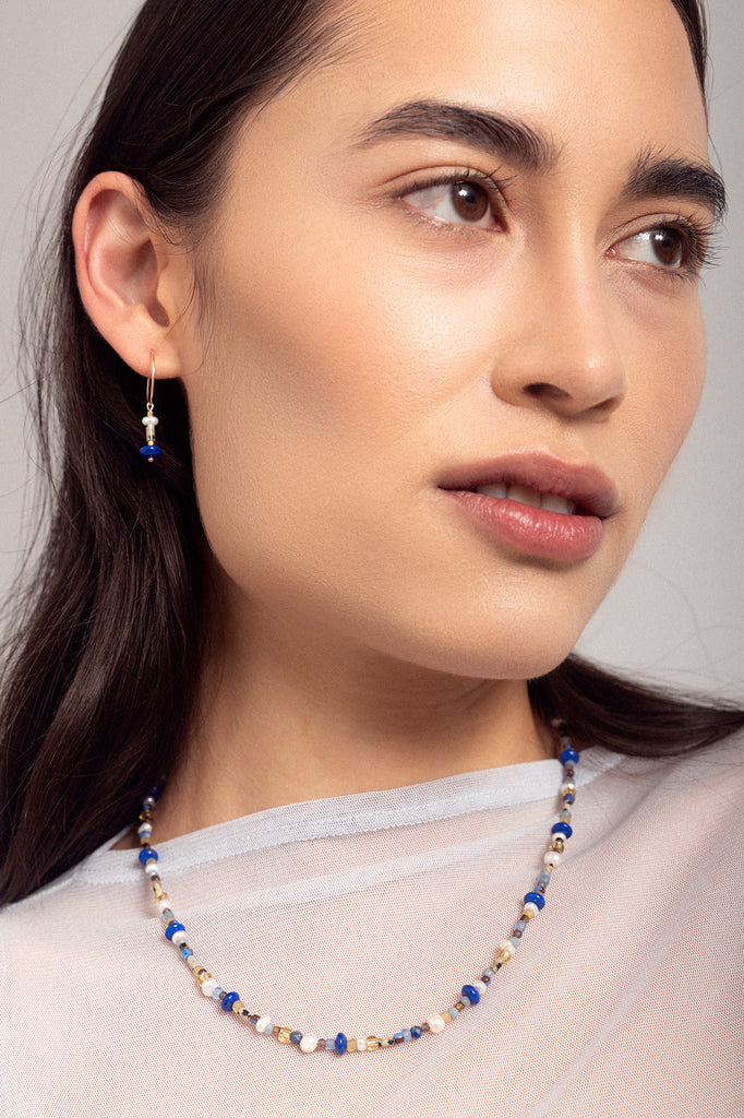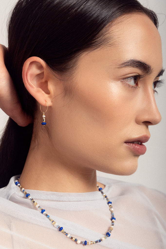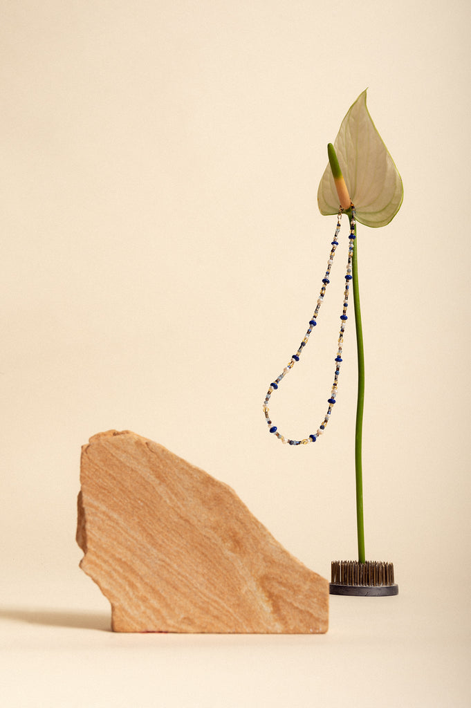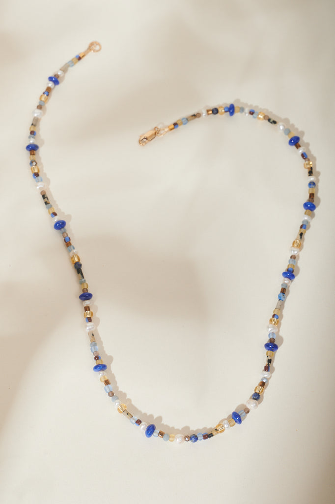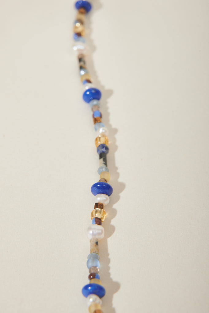 / Market Day Necklace - Lapis Lazuli, Freshwater Pearls, Dalmatian Jasper + Smokey Quartz