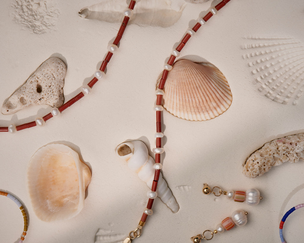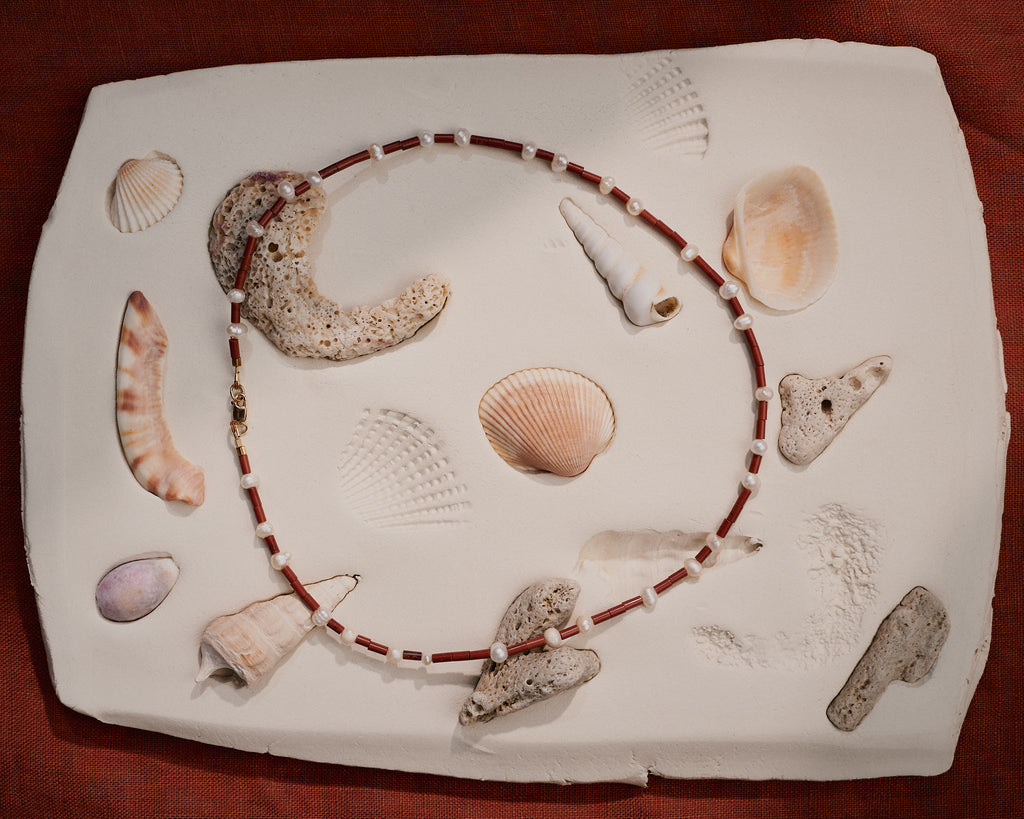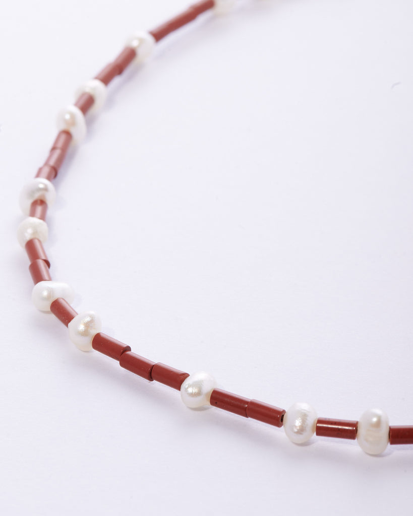Riverbed Necklace - Red Jasper & Freshwater Pearls