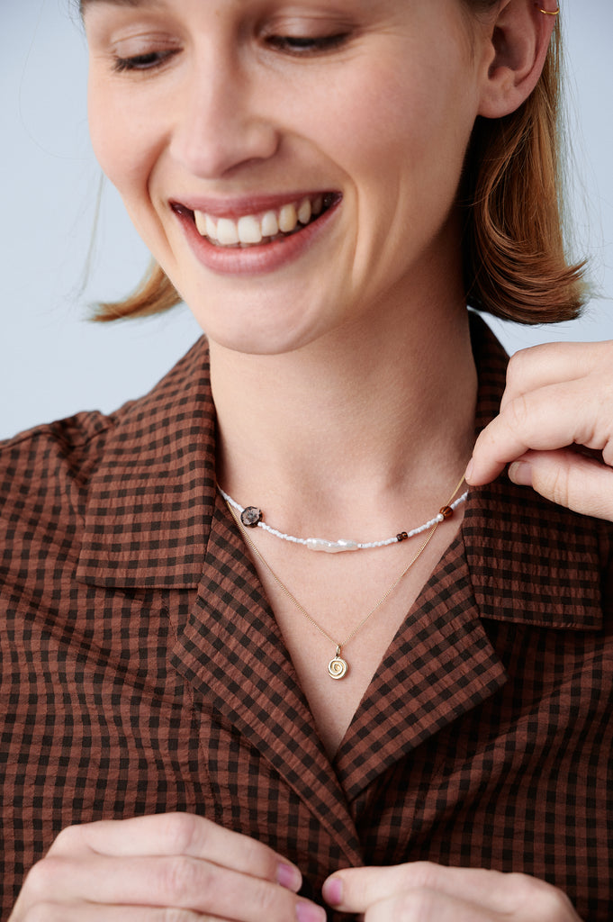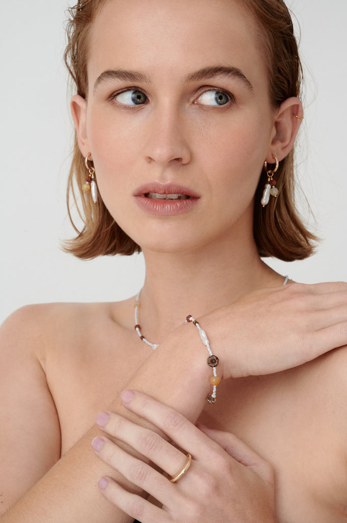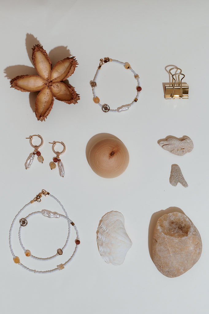 Each piece is hand threaded and given the natural variation in shape, size and colour of each Freshwater Pearl and semi-precious stone bead, there will be slight differences between each piece, making it truly unique for you and yours x