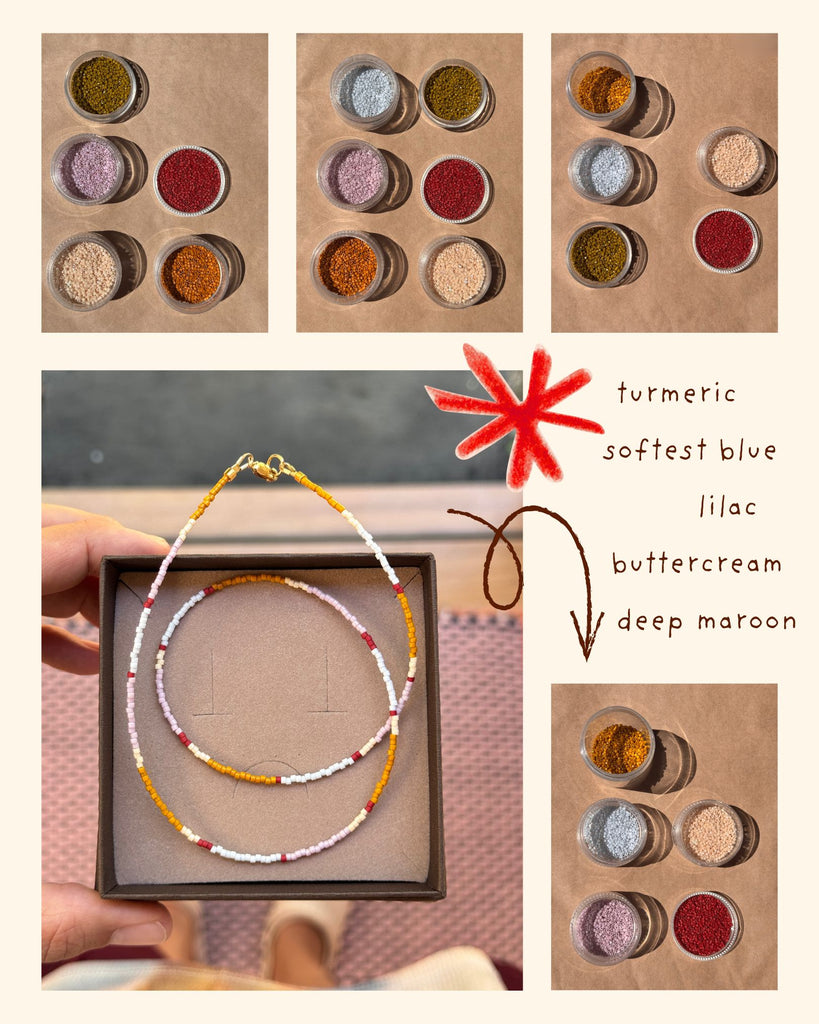 Each piece is hand threaded and given the natural variation in shape and size of each glass bead, there will slight differences between each piece, making it truly unique for you and yours x